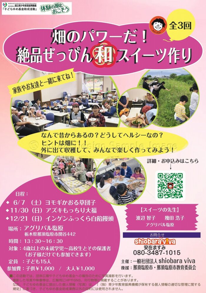 イベント 6/7 畑のパワーだ!絶品ぜっぴん和スイーツ作り2025 2025.05.08 by yellnasushiobara 0 【親子体験】 「 畑のパワーだ!絶品ぜっぴん和スイーツ作り2025 」 日時:6/7(土) 場所:アグリパル塩原(那須塩原市関谷442) 何からできてるの?どうして昔からあるの?どうしてヘルシーなの? ヒントは野や畑に! みんなで楽しくおいしく作ろう!! 詳細・申込み https://shiobaraviva.com/sweets2025