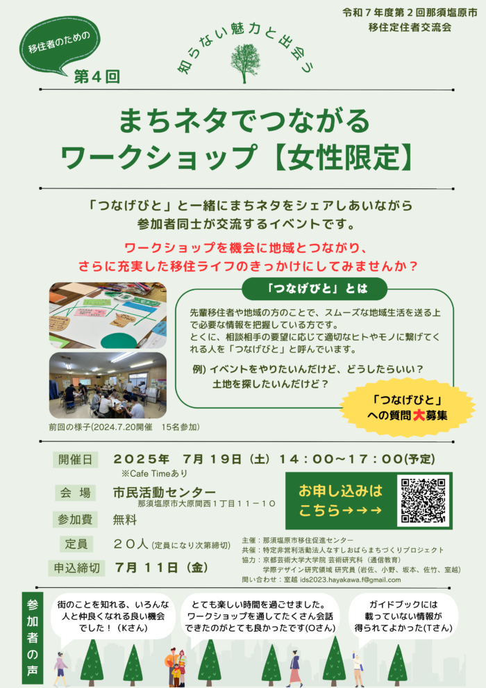 研究の一環で企画され、那須塩原市移住促進センターと協力して開催されるものです。