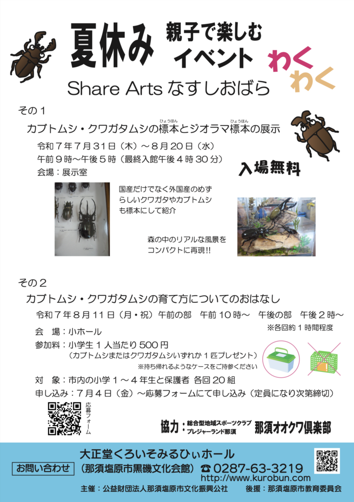 【カブトムシ・クワガタムシの標本とジオラマ標本の展示】